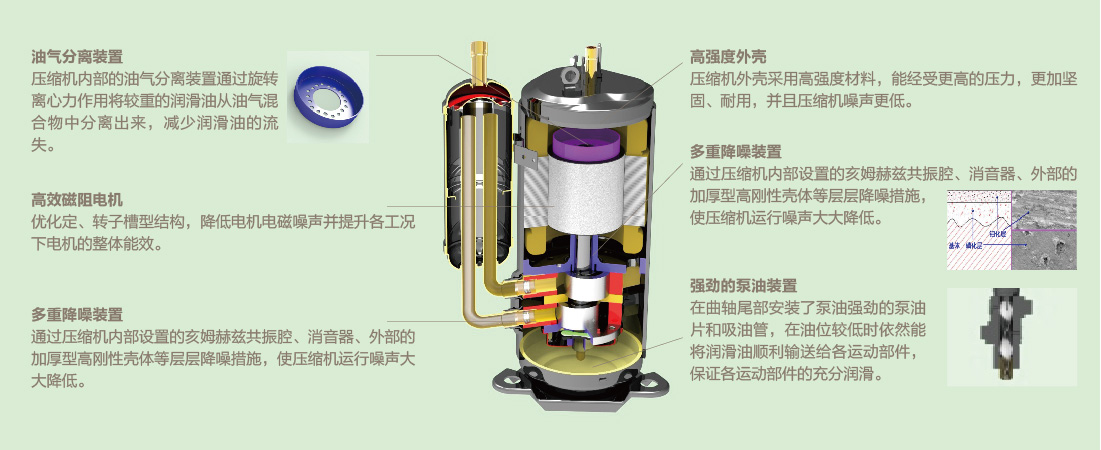 外機、內機均采用直流電機,相對普通電機效率提高30%以上;電機在高溫高濕環境下能持續穩定運行,內電機在-20℃~40℃、外電機在-20℃~60℃范圍內均可持續穩定運行。
